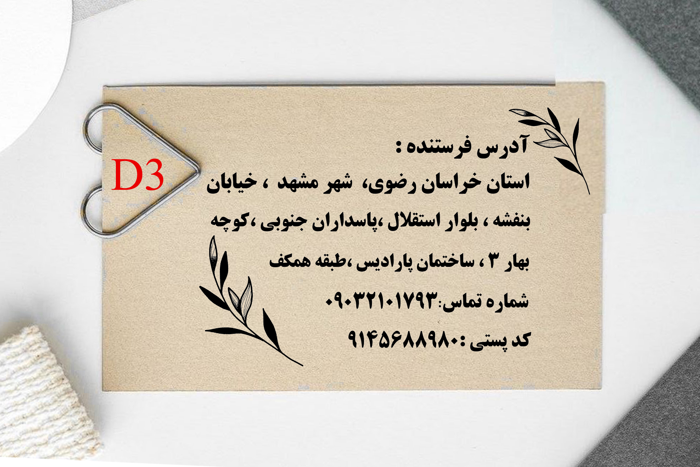 اطلاعات روی مهر ادرس کامل پستی و نام فرستنده کدپستی شماره تماس فرستنده را موقع ثبت سفارش تکمیل کنید.